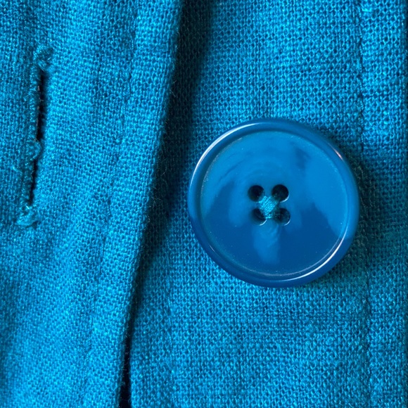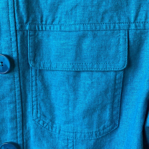 Has beautiful functional buttons down the front. Two pockets in the front.