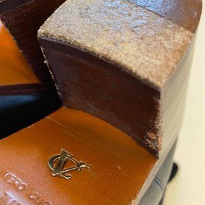 VERO CUGIO Leather/suede black boot. This high quality all leather boot has a suede leather shaft that can be cuffed down or worn up and leather foot. Stacked chunky heel. Detailed white stitching along sole. Heel has some chipping (refer to pic) Boot has some wear with tons of life left. Gorgeous Boot! Size 7m