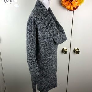 EXPRESS DEEP COWL NECK MERINO WOOL BLEND 3/4 SLEEVE SWEATER SZ MED GRY/WHT