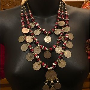 Authentic Rajasthani gypsy coin necklace with Aum om beads boho