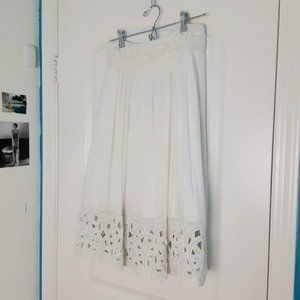 - Gorgeous A-line skirt with pearl embellishments at the waist and hem.
