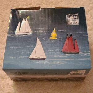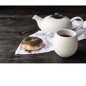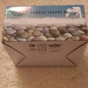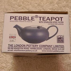 The modern shaped Pebble Teapot has a 36 ounce (four cup) capacity