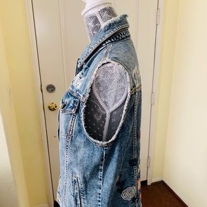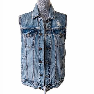 Talk about statement piece! Gorgeous distressed acid wash denim vest. Preowned, used 1-3 times. Very beautiful and unique garment.