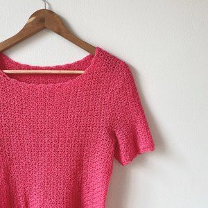 Vintage • Crochet Short Sleeve Top in Hot Pink