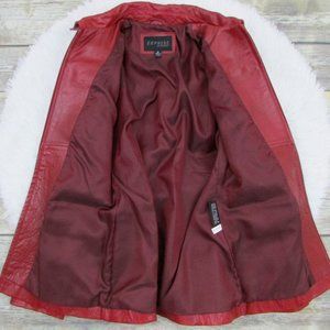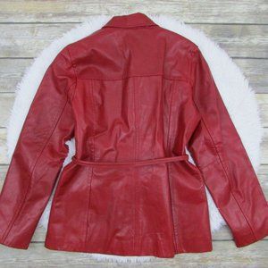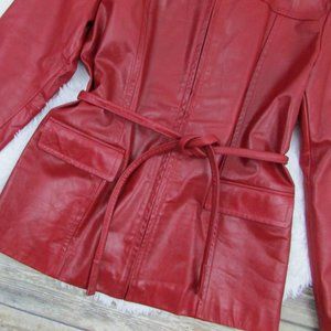 Express Zip Front Belted Leather Jacket Red