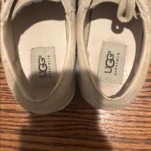 These sneakers are perfect for fall weather. Suede outer with fuzzy, warm lining under the tongue. Worn with some signs of wear but still lots of life left !
