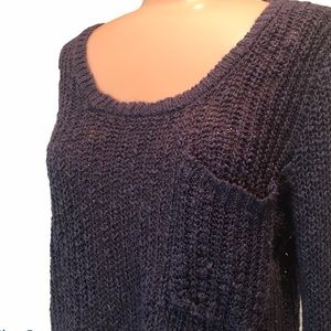 Super cute loose knit sweater by Full Tilt. Can be worn on or off shoulder. Loose knit fabric, front chest pocket, scoop neck. Perfect for your fall wardrobe. Size small. Preowned, some small snags or pills to be expected with this type of fabric. See pics. Color is navy blue.