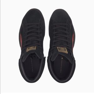 Brand new never worn before Puma high top sneaker by Charlotte Olympia. Black suede sneakers with red sequence and gold piping up the side. The sneakers have no marks or blemishes. US size 6.5 Sneakers come in its original box. Additional pics available upon request.