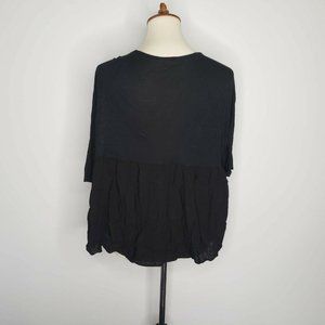 BLUESTEEL, Womens, Black, Hi Low Hem, Mixed Media, 1/2 Dolman Sleeve, Sleeve, Empire Waist, Top, Stretch Top Half