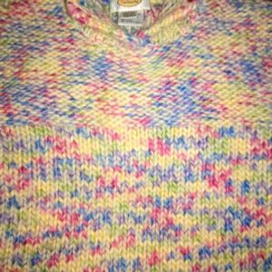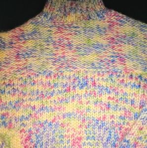 Multi-Color; Heavy, Chunky-Knit; Turtleneck Sweater; Gently Worn; Good Condition; Minor Pilling; A Knitted, Horizontal-Line Detailing Runs Across the Upper Chest & Back; Good Quality Material