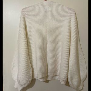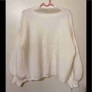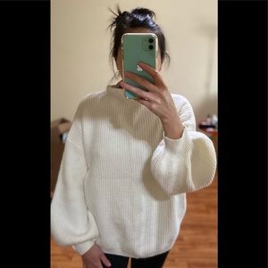 Soft mock neck sweater with billowy sleeves. off white/ ivory color.