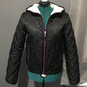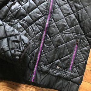 cozy black puffer with purple zipper (s/m)