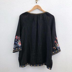 JOHNNY WAS Black Tiwa Peasant Blouse Medium