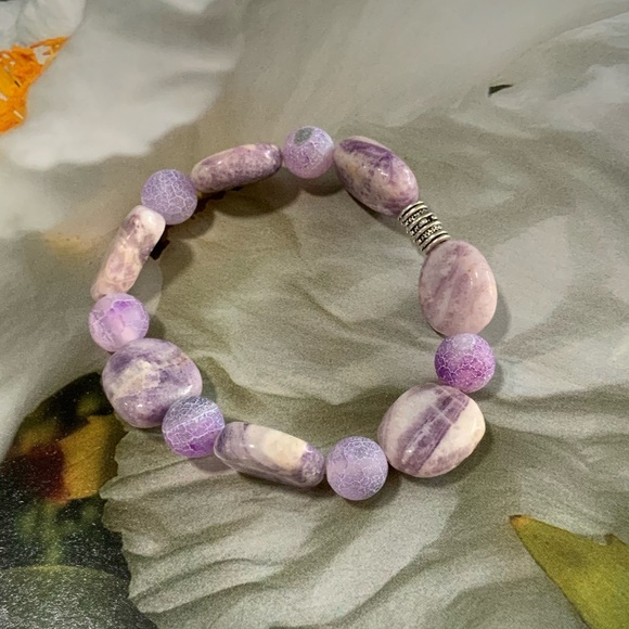 Handmade Amethyst & Heat Cracked Agate Gemstone Stretch Bracelet