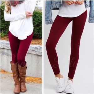 These are so soft and fashionable. High rise lightly lined fleece leggings. Wine rich color. One size ( 2-12) fits best
