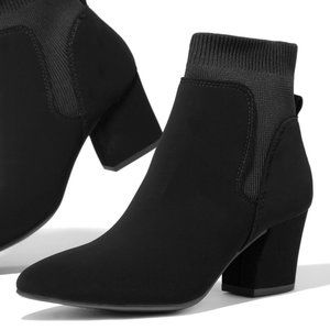 New Stretchy Sock Ankle Booties Block Heel Slip On