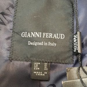 NWT $480 Gianni Feraud navy herringbone long coat with invisible front pockets and fully lined.