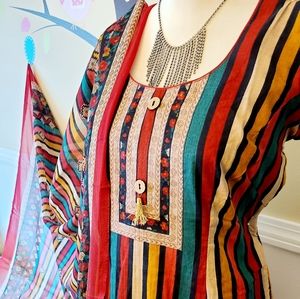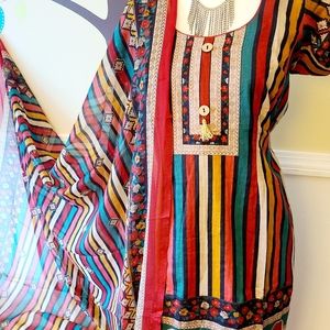 Absolutely gorgeous and vibrant in colors,this patiala suit set will make you stand out in the crowd while giving you comfort in wearing the outfit as well. Fabric is cotton has additional cloth margin given inside to expand if need be