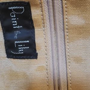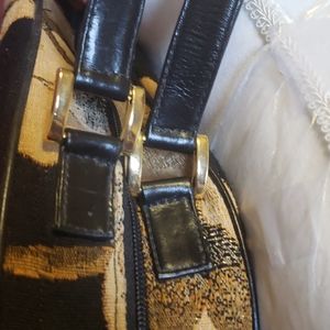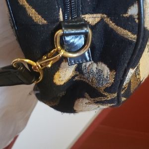 I bought this bag at a AIDS BENEFIT LUNCHEON. I just found it in my closet all tucked away. This shoulder bag has detachable straps two inner compartments, one zippered. Zipper closure on top. Bag is fully lined and could pass for new. Measurement approximately 19 inches X 15 inches. Gold hardware. Paint the Lilly emblem inside of bag and on the handle Paint the Lilly by Nicole Carney.