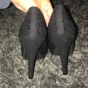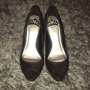 Like new, only worn once for a few hours. Sparkly black open toe heels. Size 9, price is final.