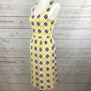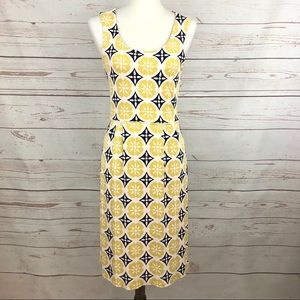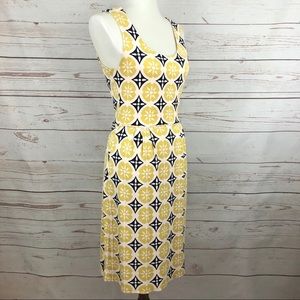 Boden Mod Lemon Print Geometric Print Midi Dress. Dark navy and yellow mod geometric lemon print stretchy tank dress. In excellent condition. Sustainable brand. Size 4