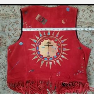 Hand painted lightweight suede Southwestern vest, brand is Char, Santa Fe, New Mexico