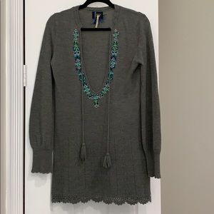 Beautiful Free People long sleeve sweater dress with embroidered floral detailing