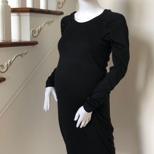 Motherhood Maternity Black Long Sleeve Knit Dress. NEW with Tags! Super Soft! Crew Neck. Detailed Shoulder Ruching. Work. Date Night. Special Occasion!