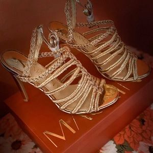 Features lace up, stiletto heel, strappy design and pointed toe.