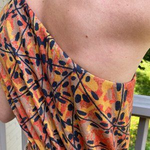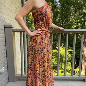 Beautiful, full length, one shoulder dress. Perfect for summer and fall! The colors are vibrant and the fit is so elegant and comfy. The perfect dress for any occasion!