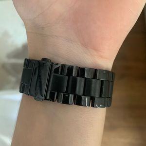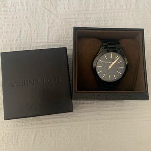 This is a beautiful, like new black and gold watch by Michael Kors. I only wore this a few times, smallest sign of wear on the back side but face and front is absolutely perfect. Comes with box and link