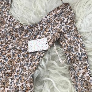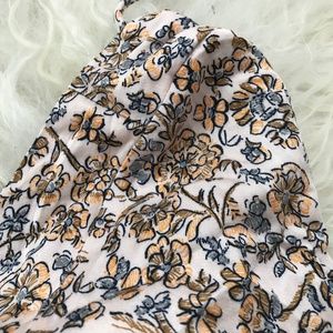 This bloom-covered, boho-inspired mini is styled with an airy back cutout and a flouncy, ladder-stitched hem.