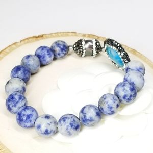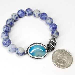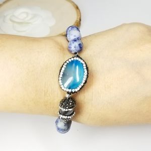 Chic Genuine Semi Precious Stones with pave hematite crystals. Stretchable fits most, great for stacking. All stones are natural, actual shipment received