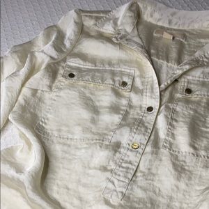 MICHAEL KORS satin blouse. Long shirt, silky soft, button detail. Marker stain on front left - see picture