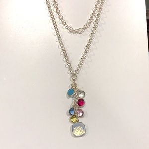 34 inch silver necklace can be worn doubled with multiple semi precious charms