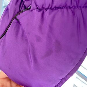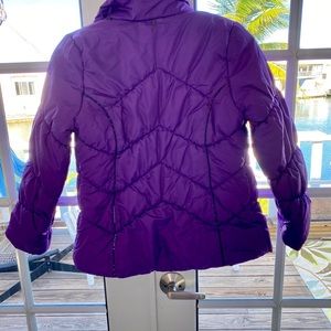 This London Fog girl’s parka is in pre-owned condition. There’s a stain on the front by the pocket (see photos) and it is missing the light hood which snapped on. That is because my daughter needed a thicker hat in Michigan and wore the Nike ski hat I have for sale. This is a pretty purple color with multi-colored piping that matched her hat.