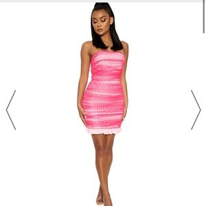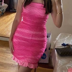 Fun flirty and so sexy! Pink polkadot mesh dress with the ruffle bottom. Fits a perfect size small.