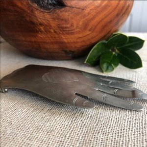 Artisan Handmade Silver Tone Metal Hand Brooch