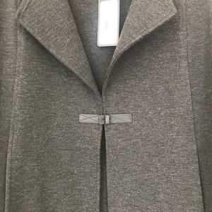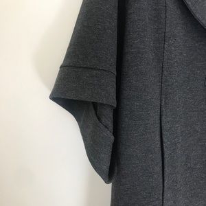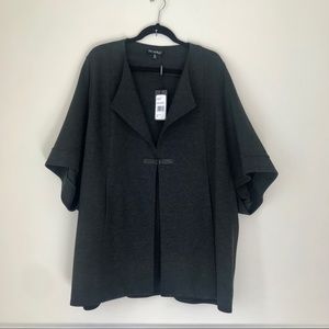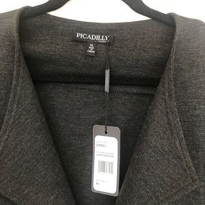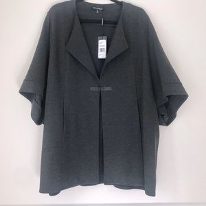 Piccadilly Canada new with tag gorgeous poncho style jacket with leather closure, and hidden front pockets in the seems. Color is a dark charcoal grey- darker photo is most accurate color- others are in brighter light to show details as they a difficult to photograph. Really gorgeous and very roomy- fits large would fit XXL as well.