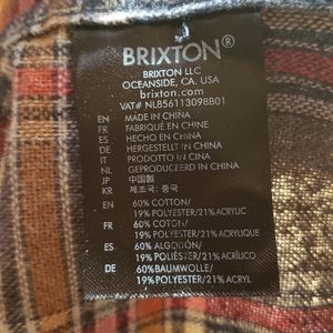 Brixton Bowery plaid flannel shirt, size small