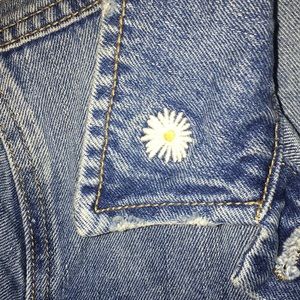 Bay Area bae area Jean denim jacked embroidered heart flower daisy unique NWOT