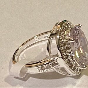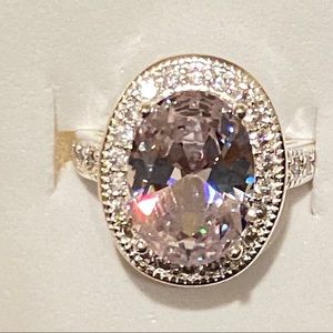 This ring has one larger oval stone in the middle surrounded by smaller stones.