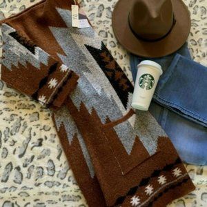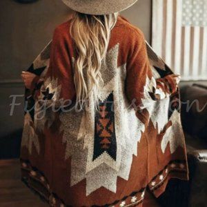 Cozy Native Print Boho Western Blanket Cardigan Sweater. Soft! Oversized Fit.