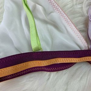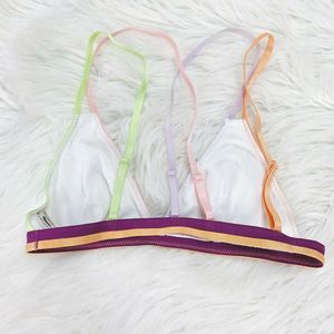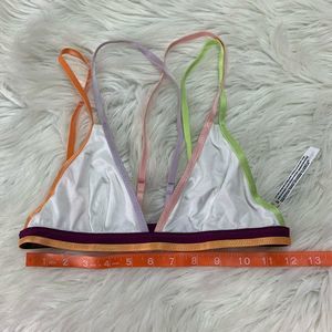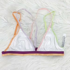 Soft triangle bralette featuring multi-color adjustable straps and trims. Elastic for the perfect fit.