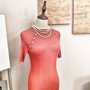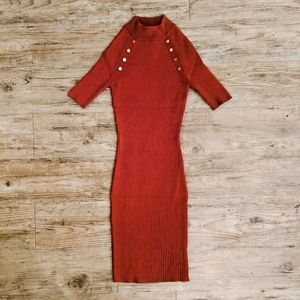 SVETLANA Studded Dress | Burnt Orange Autumn Short Sleeve Sweater Dress | Sexy Form Fitting NWOT