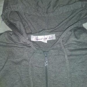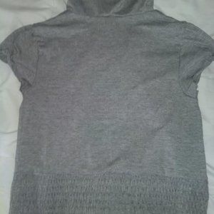 soft jersey grey knit material. great condition. fits like a s/m. small/medium.