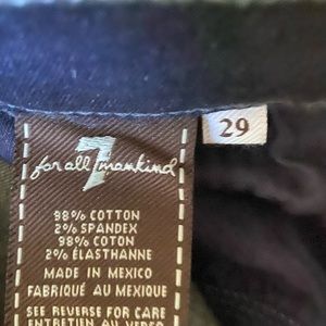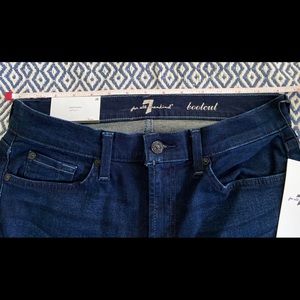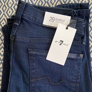 7 For All Mankind Original Bootcut Jeans in size 29. Dark wash, even throughout the jeans. Good amount of stretch for 98% cotton, 2% spandex. Brand new with tags.Additional measurements available upon request.
