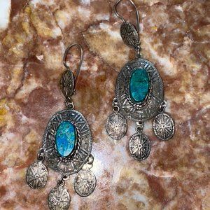 Vintage Old Pawn Silver Azurite Malachite Earrings Beautifully handcrafted earrings with a Old Pawn sterling silver - Marked “925” on reverse.