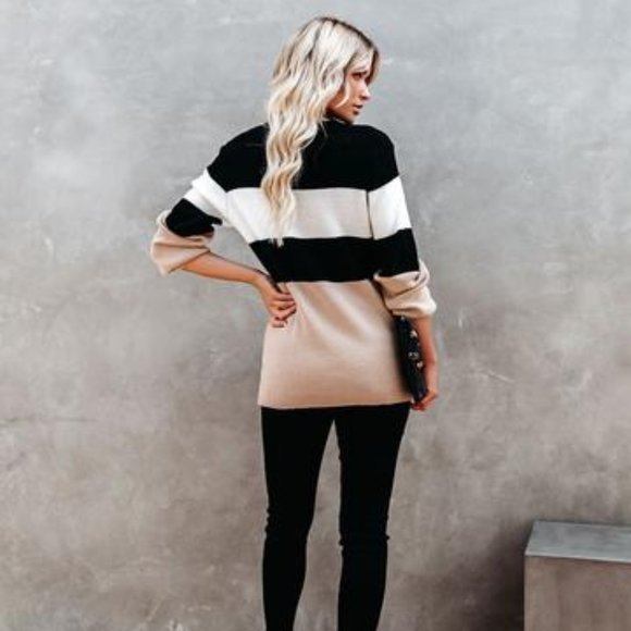 Wherever the day may take you do it in style in with our Harleston Black Beige & Ivory Colorblock Knit Sweater. Featuring a crew neckline, long sleeves and color blocking in black, beige and ivory. Pair with black denim for a casual feel or dress them up with faux leather leggings!