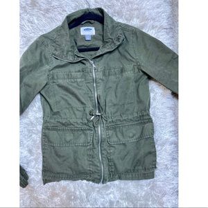 Army green light weight utility jacket with a zipper and pockets. Worn only a few time times, excellent condition